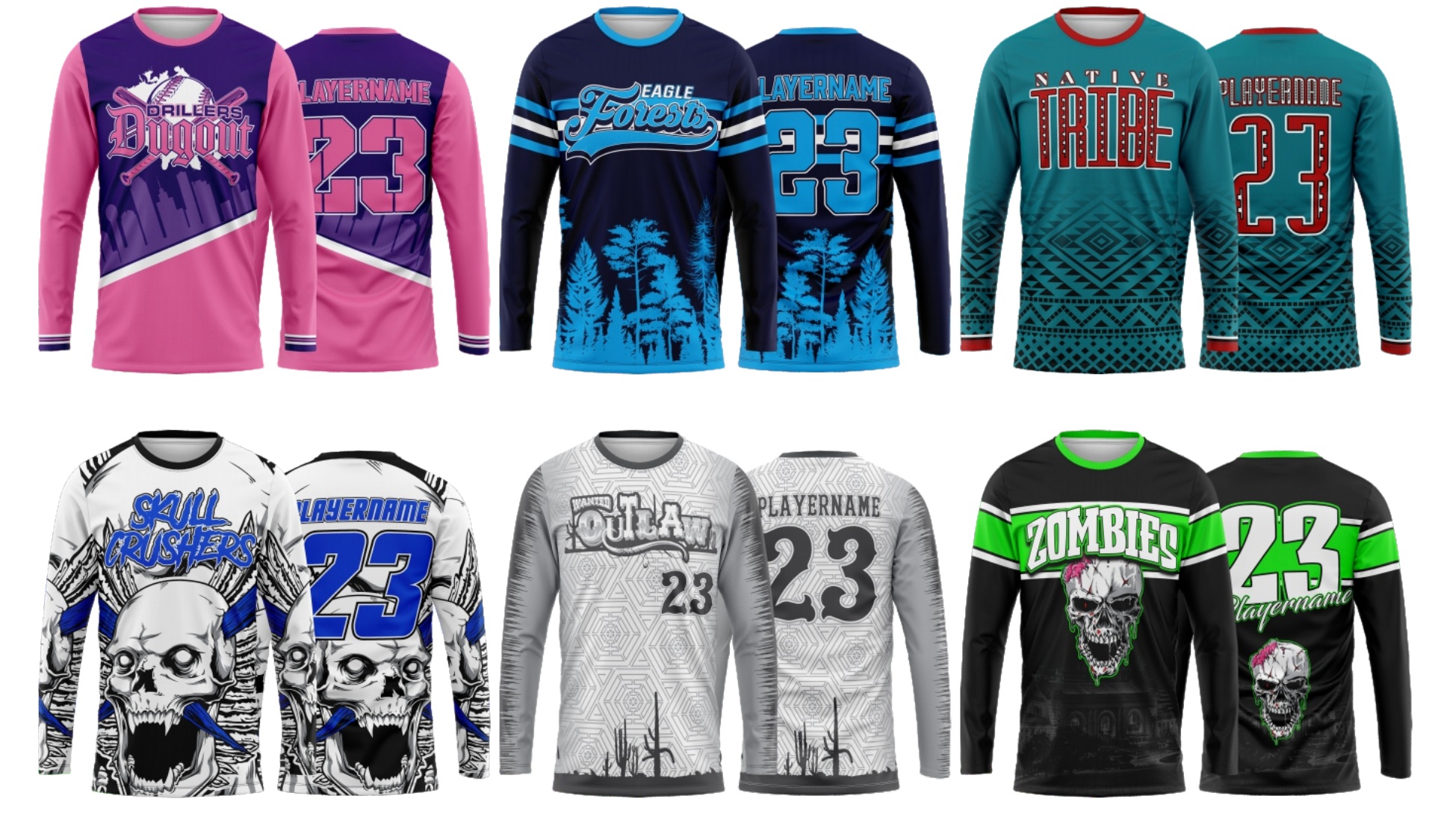 Our qualified graphic designers can customize our fully sublimated products with an infinite number of colours and patterns to suit your team. Our designers can work hand in hand with you and your team to create a kit that will stick in the memory of your competitors. Wearing a kit from Jersey Plug you’re sure to stand out and blow the other teams away. Our products come in a range of colours with the option of additional embroidery or screen-printing.